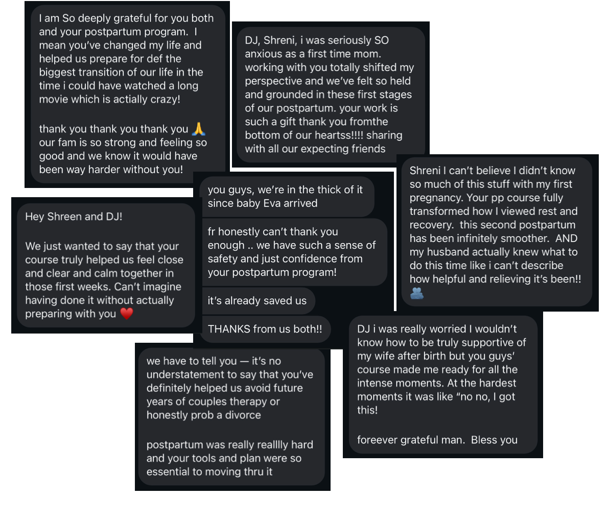 “We were nervous about what life would look like after the baby came. We had done A LOT the birth prep, but postpartum felt like a big unknown. Going through their playbook together gave us a clear plan and helped us feel like a real team. Honestly, we recommend this course to all new parents.”